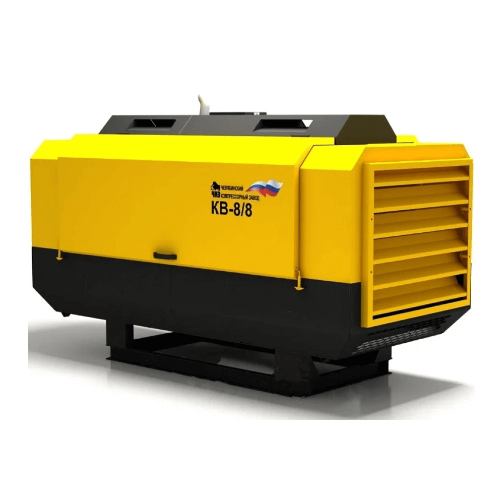 Дизельный компрессор КВ-8/8 предназначен для снабжения сжатым воздухом пневмоинструмента, пневмоприводов, оборудования по дробеструйной обработке различных поверхностей, бурового оборудования, при температуре окружающей среды в обычном исполнении от –15°С до +40°С, при специальном исполнении –35°С до +40°С.