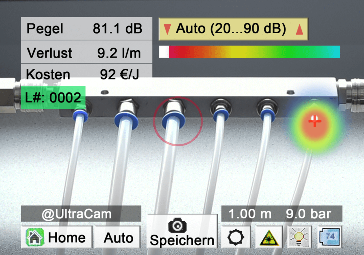 Детектор утечек LD 510 UltraCam использует 30 MEMS-микрофонов для расчета и визуализации ультразвукового изображения. Кроме того, устройство делает неслышимый ультразвук слышимым. Преимущество в сравнении с классическими детекторами утечки: визуальное отображение утечки на экране, даже в шумной обстановке во время производства.
