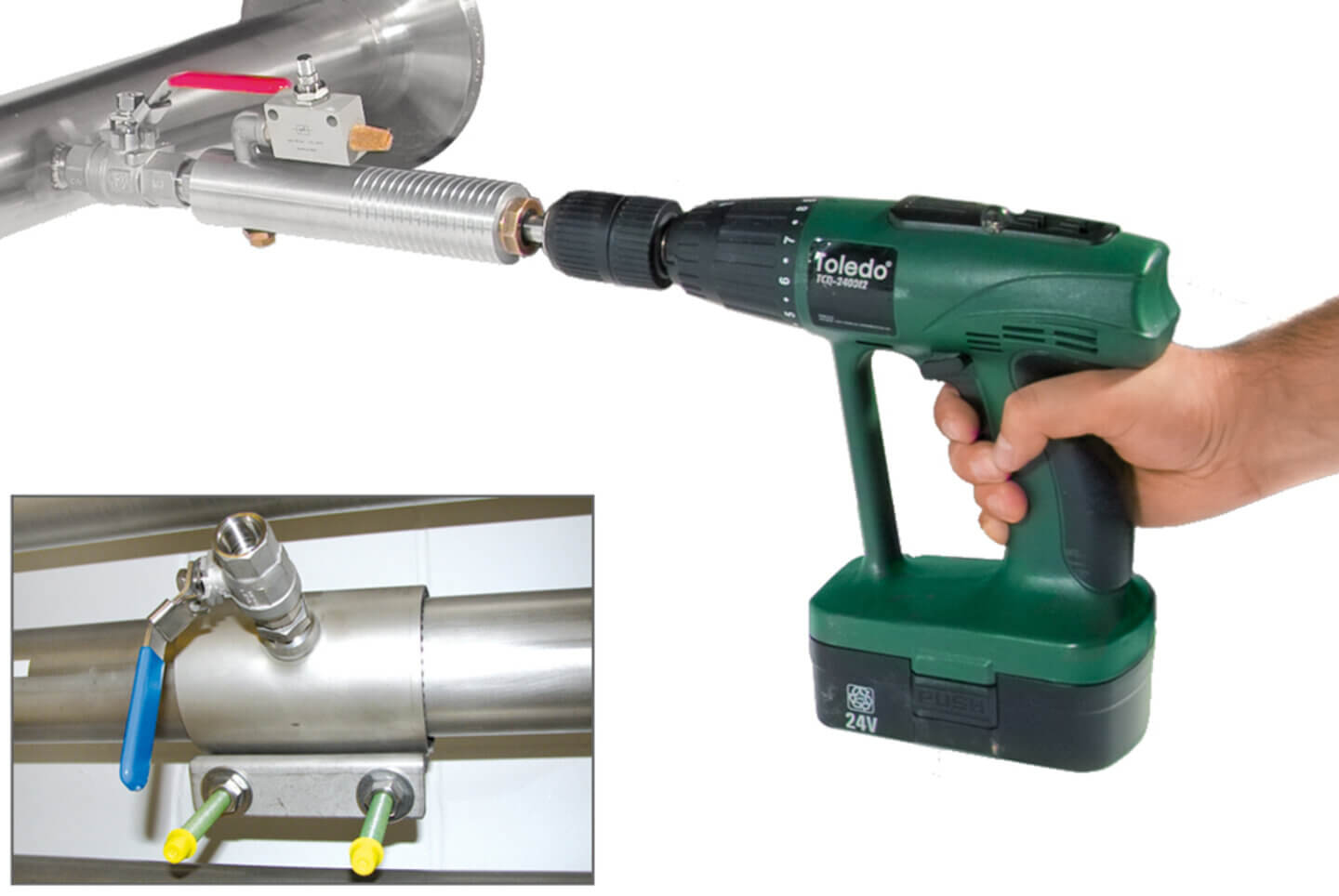 Благодаря своей конструкции он предельно прост в монтаже, может устанавливаться под рабочим давлением среды и использоваться на разных диаметрах трубопроводов от 1,2’’ до 1000 мм. Предохранительное кольцо защищает от вылета зонда из трубы под действием давления.