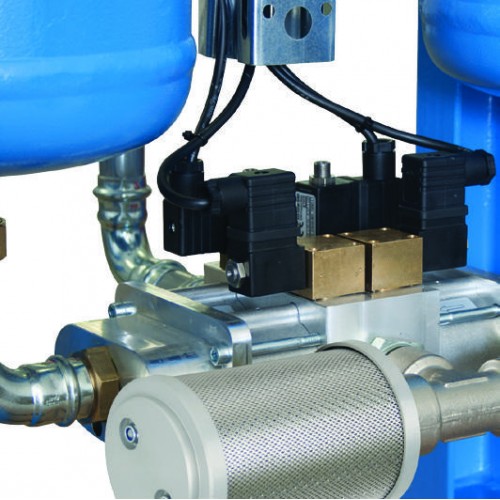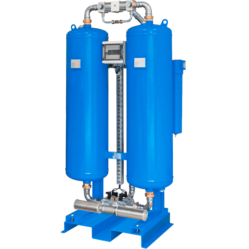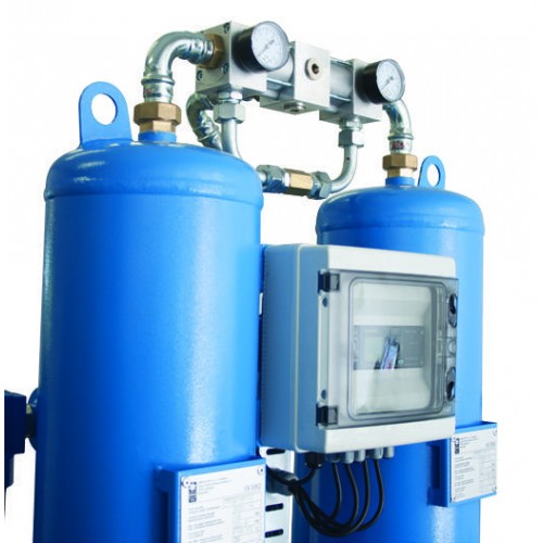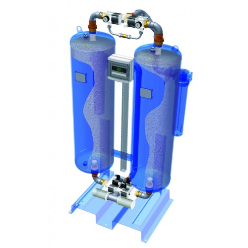 Адсорбционные осушители В-DRY предназначены для непрерывного отделения водяного пара из сжатого воздуха, тем самым снижая точку росы под давлением. Осушитель серии В-DRY состоит из двух колон, наполненных адсорбентом, верхнего и нижнего блока управления, контроллера с LCD дисплеем, манометров, поддерживающей конструкции и фильтров. Адсорбция происходит под давлением в первой колонне, в то время как во второй колонне насыщенный влагой адсорбент регенерируется при помощи части уже высушенного сжатого воздуха при давлении окружающей среды. Когда первая колонна насыщена до определенного уровня, происходит переключение колон, и процесс адсорбции продолжается во второй колонне без падения давления на выходе из осушителя. Регенерация насыщенного адсорбента происходит потому, что небольшая часть уже сухого сжатого воздуха расширяется и при расширении становится очень сухой. Серия осушителей B-DRY обладает пропускной способностью от 1,8 до 20 м³/мин. может достигать точки росы в -25, -40 и -70 °C.